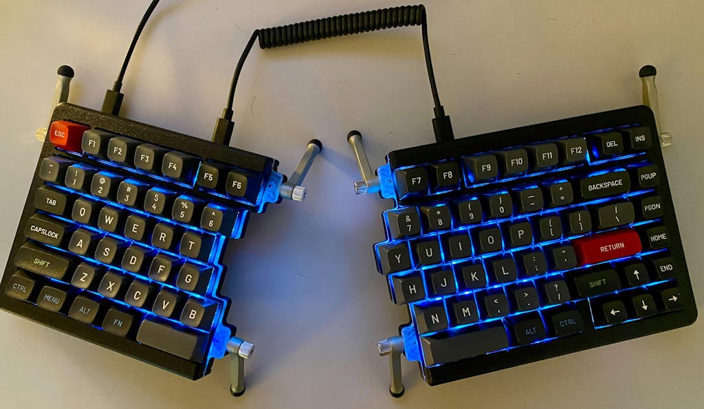 This is a Sync Rev2 from early 2021. I love it, the only thing I dislike is that it is split. I saw they were offering acrylic plates/cases but they were all sold out by the time I noticed.