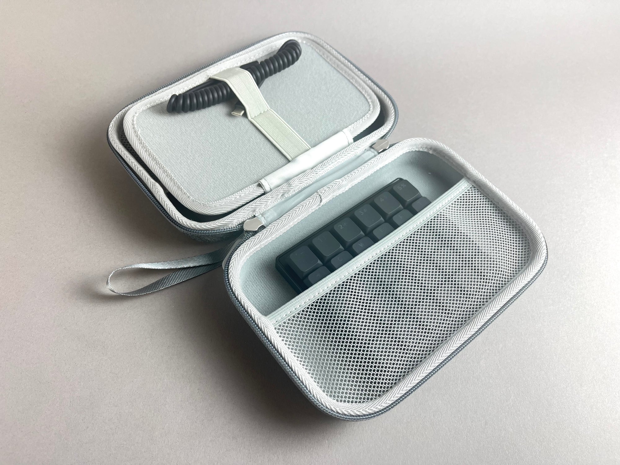 The Nyquist LM comes with its own carrying case, so you can protect your keyboard while on the go. This hard-shell carrying case holds each keyboard half in a mesh pocket, and has elastic bands to hold cables.